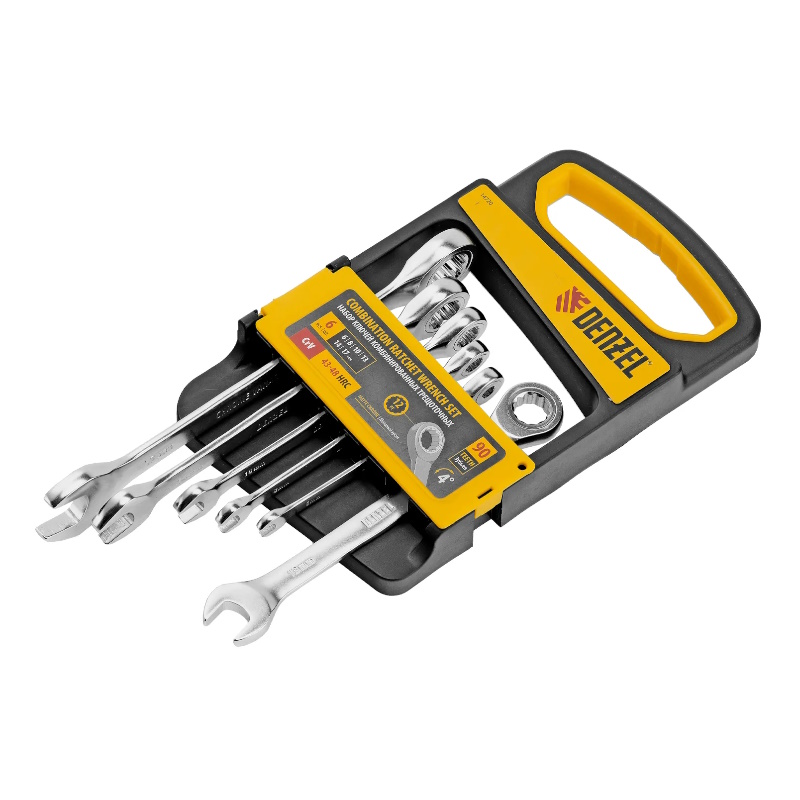 Набор ключей комбинированных Denzel 14720, трещоточных, 6-17 мм, 6 шт., CrV, матовый хром
