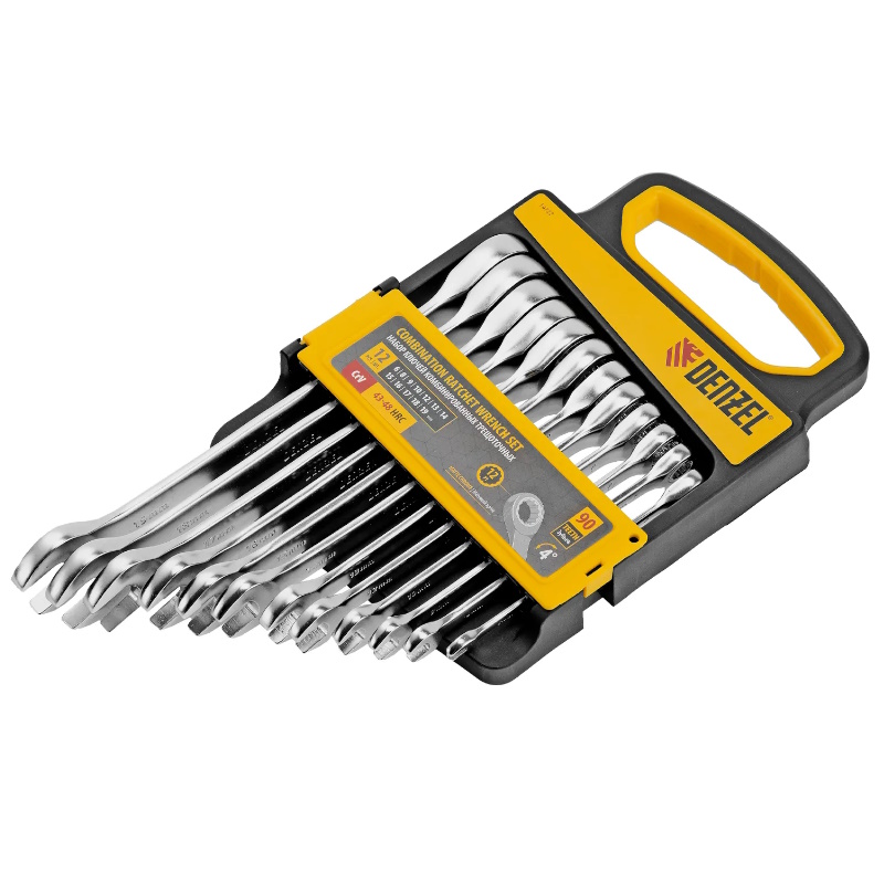 Набор ключей комбинированных трещоточных Denzel 14722, 6-19 мм, 12 шт., CrV, матовый хром