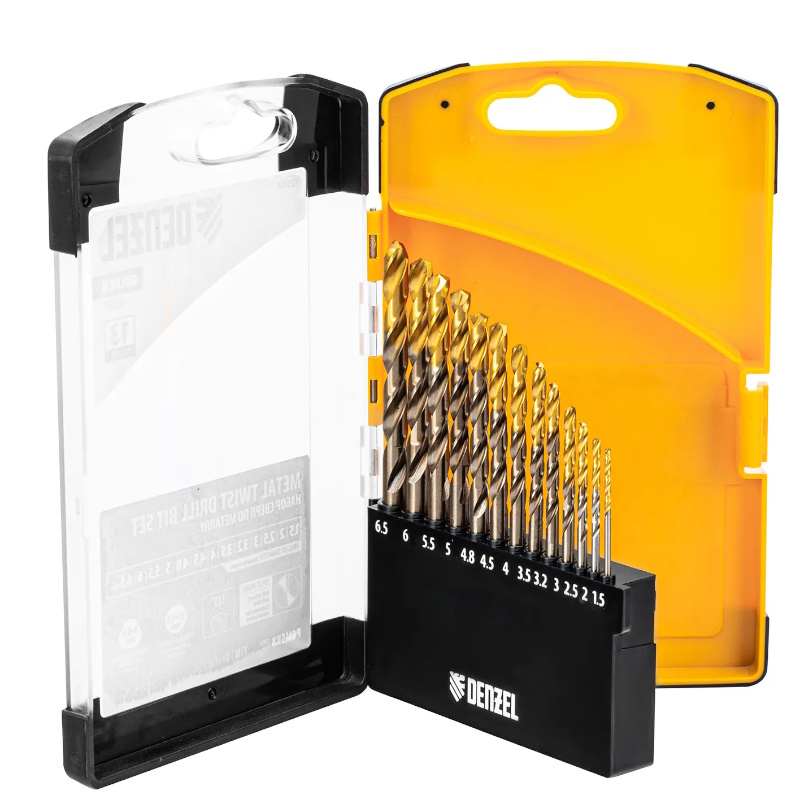 Набор сверл по металлу Denzel 723006, 1,5-6,5мм, Р6М5К8-TiN, Golden Tip, 13 шт.