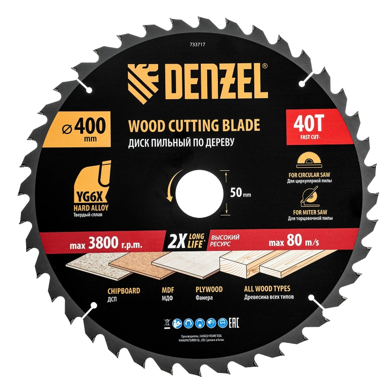 Пильный диск по дереву Denzel 733717, ф400 х 50 мм, 40 зубьев