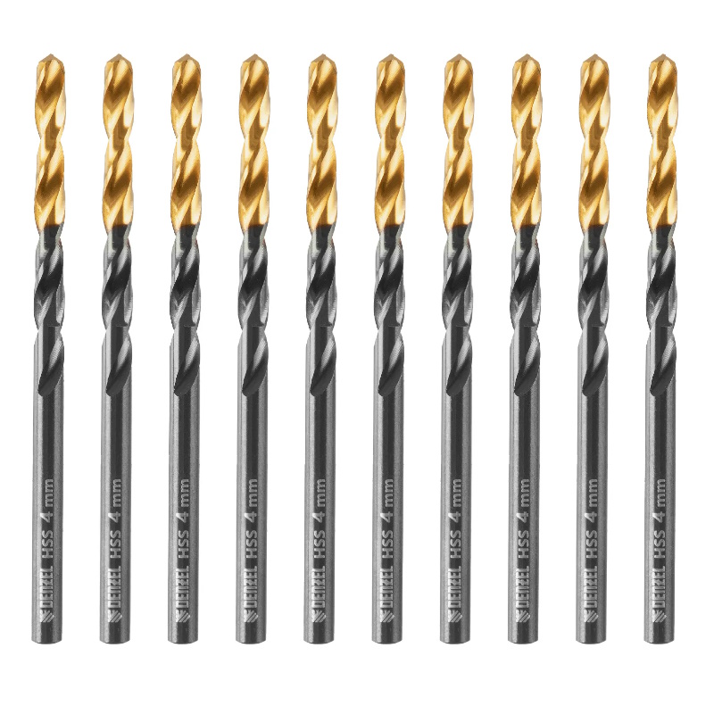 Сверло по металлу Denzel 717209, 4 мм, HSS-Tin, Golden Tip, 10 шт.