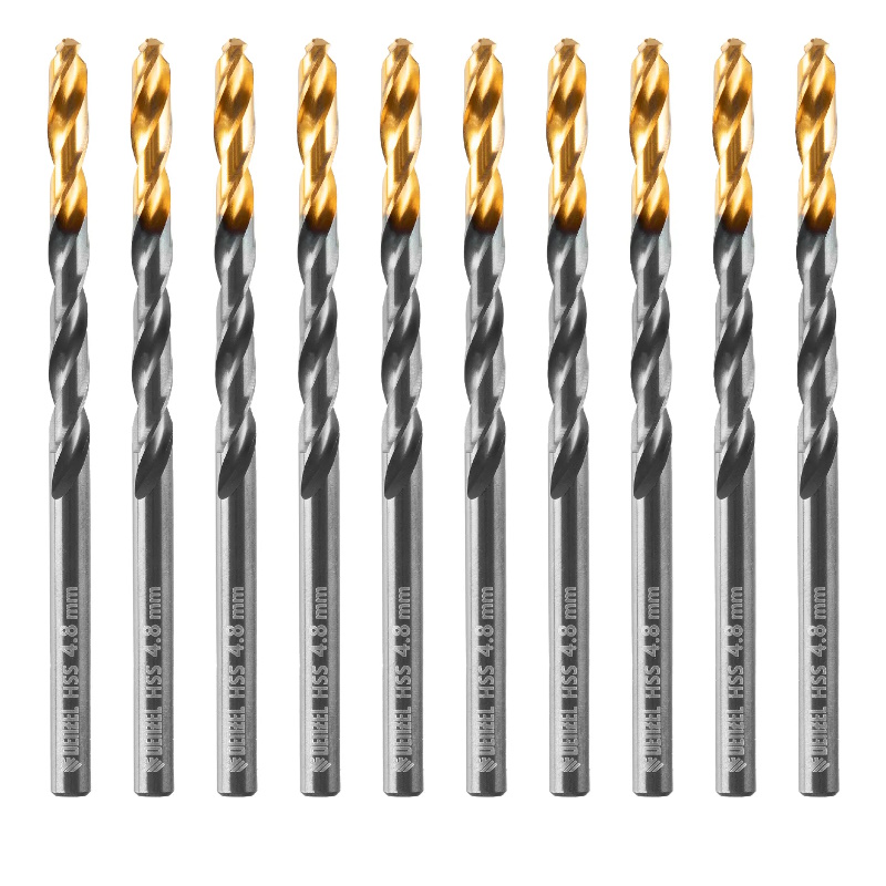 Сверло по металлу Denzel 717212, 4,8 мм, HSS-Tin, Golden Tip, 10 шт.
