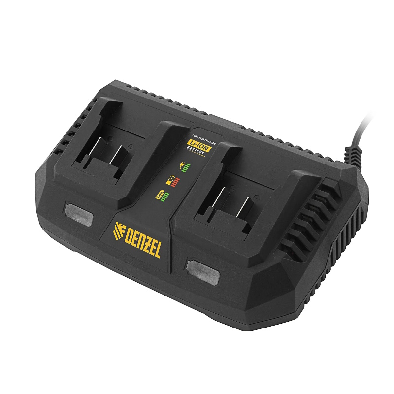 Универсальное зарядное устройство Denzel IBC-18-3.0-2 28454 подходит ко всем Li-Ion аккумуляторам на платформе Denzel 18 В. Быстрое зарядное устройство обеспечивает высокую скорость зарядки сразу двух батарей и гарантирует превосходную работу вашего инструментаПреимущества Бережная зарядка до глубокого заряда — интеллектуальная система обеспечивает подзарядку в щадящем режиме, с сохранением КПД и без снижения емкости аккумуляторов Электронное управление — пользователю доступен контроль степени заряда и температуры Защита от перезаряда и экономия электричества — по окончании зарядки устройство автоматически отключается Долгий срок службы — само устройство и аккумуляторы защищены от перепадов напряжения в сети, короткого замыкания и переполюсовки контактов LED-индикатор уровня заряда — можно контролировать степень готовности аккумуляторов к работе Длина кабеля 1,6 м — зарядное устройство можно расположить в удобном месте