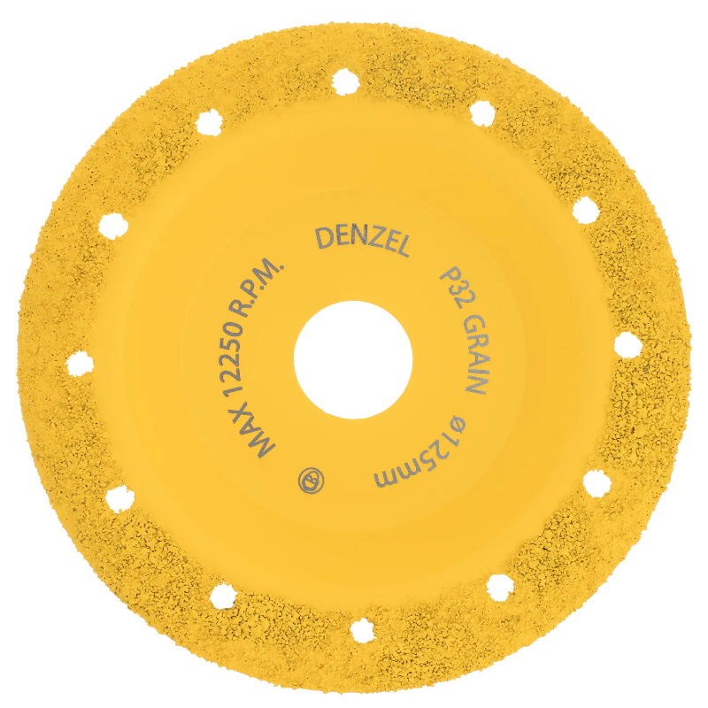Твердосплавная зачистная чашка Denzel 72979 диаметром 125 мм, с наклонной рабочей частью и мелким зерном P32, используется для проведения шлифовальных работ при помощи углошлифовальной машины (УШМ). Мелкозернистый абразив оптимален для чистовой обработки твердой и мягкой древесины, кирпича, пластика, резины, газобетона. С помощью чашки можно устранить мелкие неровности, остатки старого покрытия, подготовить поверхности к дальнейшей отделке. Режущие частицы из твердого сплава ВК8 не образуют абразивную пыль, что снижает вредное воздействие на здоровье пользователя. Оснастка пригодится при проведении строительных, ремонтных и отделочных работ.Преимущества Высокая режущая способность — твердосплавный абразив позволяет быстро и эффективно решать поставленные задачи Снижение нагрузки на УШМ — использование оснастки с облегченным корпусом позволяет избежать поломки инструмента Надежность — штампованный корпус из стали 45 отличается высокой прочностью Высокий ресурс — абразивные зерна надежно закреплены на основании методом вакуумной пайки, рабочая поверхность не подвержена засаливанию Производительность — в корпусе предусмотрены отверстия для отвода шлама, что обеспечивает эффективное охлаждение и высокую скорость работы Защита от коррозии — на чашку нанесено эмалевое покрытие Простой уход — после окончания работы достаточно очистить оснастку щеткой