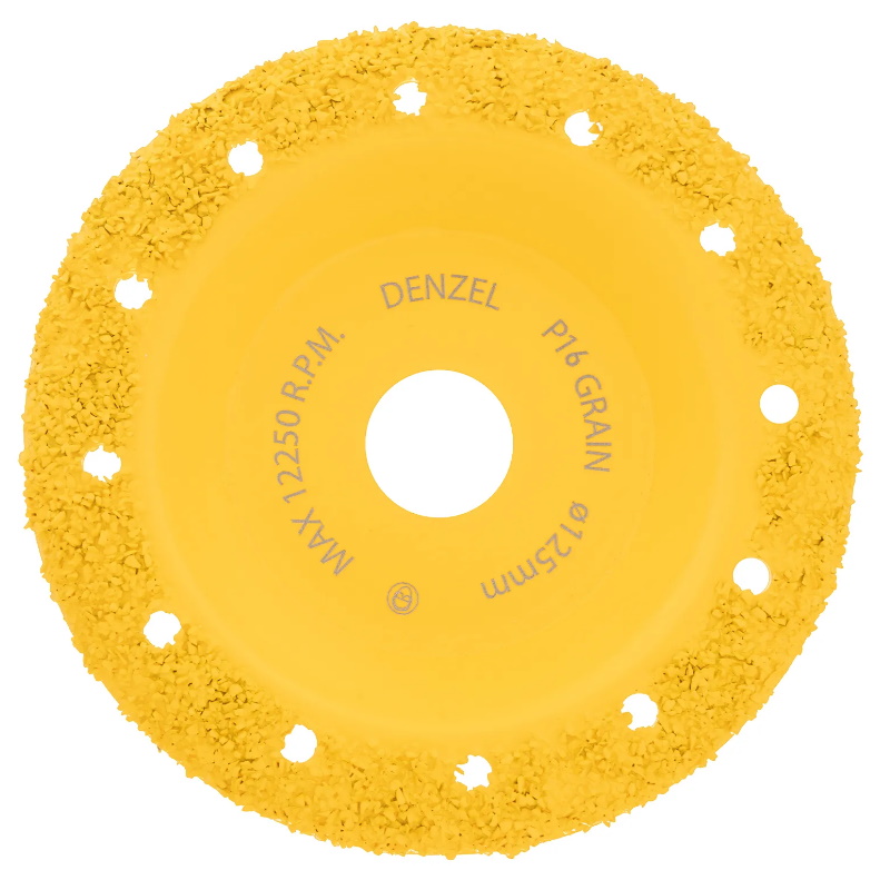 Твердосплавная зачистная чашка Denzel 72977 диаметром 125 мм, со средним зерном P16 и наклонной рабочей частью, устанавливается на углошлифовальную машину (УШМ) и используется для черновой обработки деревянных, пластиковых, резиновых, газобетонных и кирпичных поверхностей. Позволяет устранить неровности, снять слой старой краски, клея, цемента. В ходе зачистных работ не образуется абразивная пыль, что снижает вредное воздействие на здоровье пользователя.Преимущества Эффективность — абразив из твердого сплава карбида вольфрама ВК8 обеспечивает высокую режущую способность и скорость работы Надежность — штампованный корпус из стали 45 отличается высокой прочностью Высокий ресурс — абразивные зерна надежно закреплены на основании методом вакуумной пайки, рабочая поверхность не подвержена засаливанию Производительность — в корпусе предусмотрены отверстия для отвода шлама, что обеспечивает высокую скорость работы и позволяет избежать перегрева оснастки Защита от коррозии — на чашку нанесено эмалевое покрытие Простой уход — после окончания работы достаточно очистить оснастку щеткой