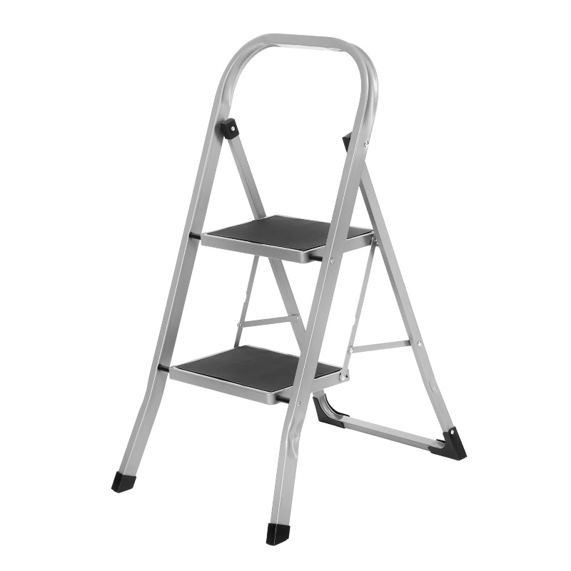 Стальная стремянка Сибртех 97726 с 2 широкими ступенями размером 20 x 30 см, с полимерным покрытием, позволяет выполнять различные работы на высоте, превышающей человеческий рост. С ее помощью можно достать нужный предмет с полки, покрасить стену, поменять лампочку, вытереть пыль на шкафу и т.д. Верхняя ступень находится на высоте 46,7 см от опорной поверхности, рабочая высота составляет 246,7 см.Преимущества Прочная конструкция — стремянка изготовлена из стального профиля и снабжена надежным механизмом раскладывания, поэтому выдерживает нагрузку до 150 кг Защита от разрушения — стальной профиль покрыт антикоррозийной краской Защита напольного покрытия — благодаря пластиковым накладкам ножки не царапают опорную поверхность Малый вес 3,37 кг — стремянку можно легко переместить в нужное место Удобное хранение — за счет толщины в сложенном виде 4,5 см стремянка не занимает много места