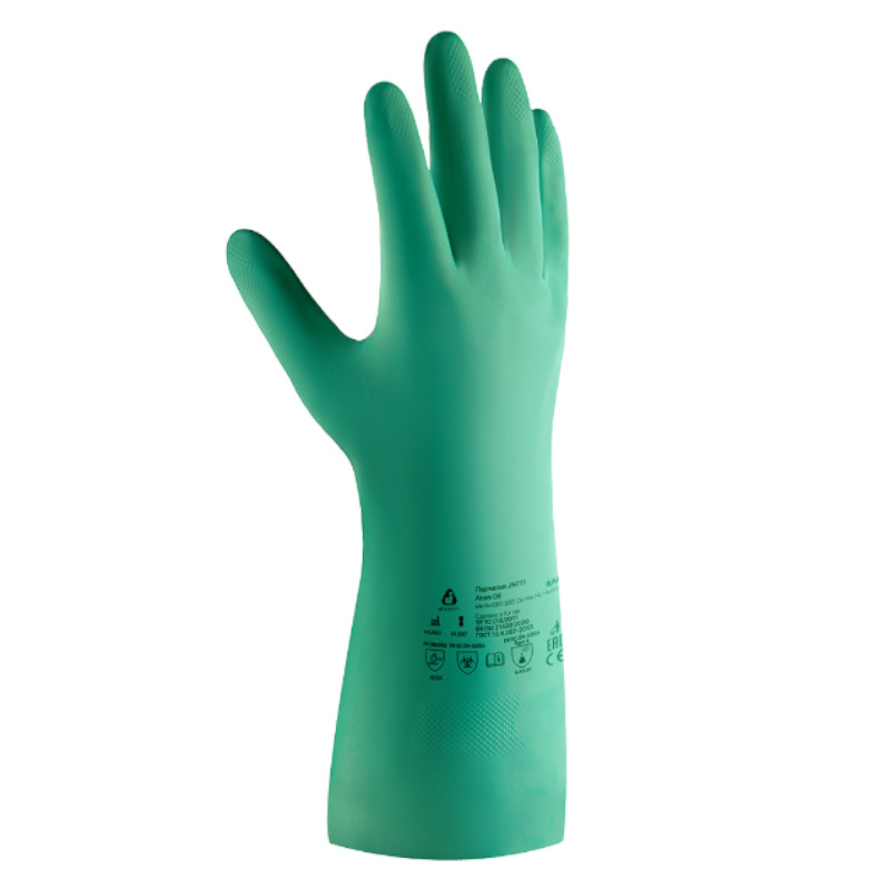 Нитриловые химостойкие перчатки Jeta Safety 80/50, с хлопковым напылением, 0.38 мм, р. 9/L JN711 предназначены для защиты от химических воздействий.Обладают высокой устойчивостью к водорастворимым неорганическим кислотам (до 80%), щелочам (до 50%), солям, спиртам, растворителям.Область применения: работа с растворителями и нефтепродуктами (керосин, бензин, уайт-спирит, ацетон), нефтью, маслами, пестицидами, лакокрасочными материалами, смазочными материалами, обезжиривание металла, обработка и очистка поверхностей, заполнение и логистика емкостей с опасными химически веществами, промышленный клининг, типография, смешивание химических продуктов, выгрузка топлива, очистка резервуаров.
