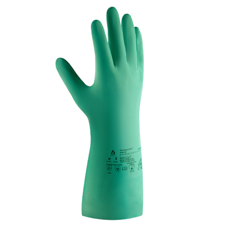 Химостойкие перчатки Jeta Safety Atom Oil JN711-11-XXL, нитриловые, с хлопковым напылением, зеленые, 0,38 мм, р.11/XXL