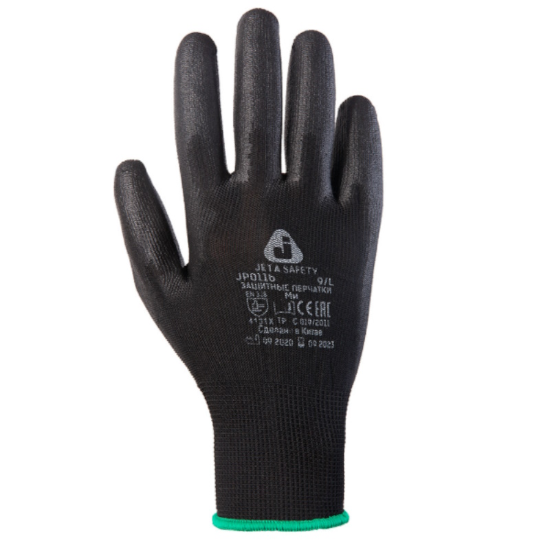 Перчатки защитные Jeta Safety JP011b-L, черные, с полиуретановым покрытием, размер L/9 (размер: 9/L)