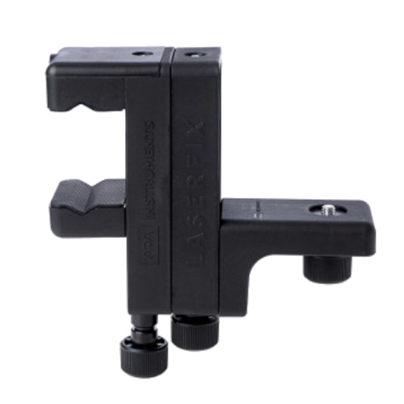 DA LASERFIX легкое и компактное универсальное крепление с микролифтом для лазерных уровней (до 1 кг) с резьбой 1/4 дюймаПреимущества Крепление вращается относительно струбцины на 360°. Такая конструкция позволяет установить крепление на поверхности с любым наклоном. Для приведения закрепленного лазерного уровня в рабочее вертикальное положение достаточно повернуть вращающуюся часть крепления. Крепление изготовлено из высокопрочного пластика стойкого к ударам. Разработано специально для профессионального использования в агрессивных условиях стройплощадки. Сломать или повредить ADA LASERFIX практически невозможно Быстрая и надежная установка и снятие осуществляется с помощью винтовой струбцины. Максимальная ширина зажима 8 см. Резиновые накладки на губках струбцины предотвращают появление царапин в месте крепления. На обоих губках выполнен V вырез для надежного крепления на трубе. Точная регулировка силы и ширины зажима осуществляется с помощью винта Диапазон установки горизонтальной площадки от 0 до 7 см. Быстрая и точная регулировка производится с помощью ручки и винта с большим шагом резьбы Специальная проушина под саморез находится в верхней и нижней части устройства, для крепления на вертикальных стенах, столбах и т.д.