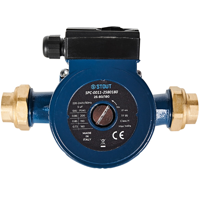 Циркуляционный насос Stout SPC-0011-2580180, 25-80/180, 220/240V, 50Hz, с латунными гайками G 1 1/2 x Rp 1