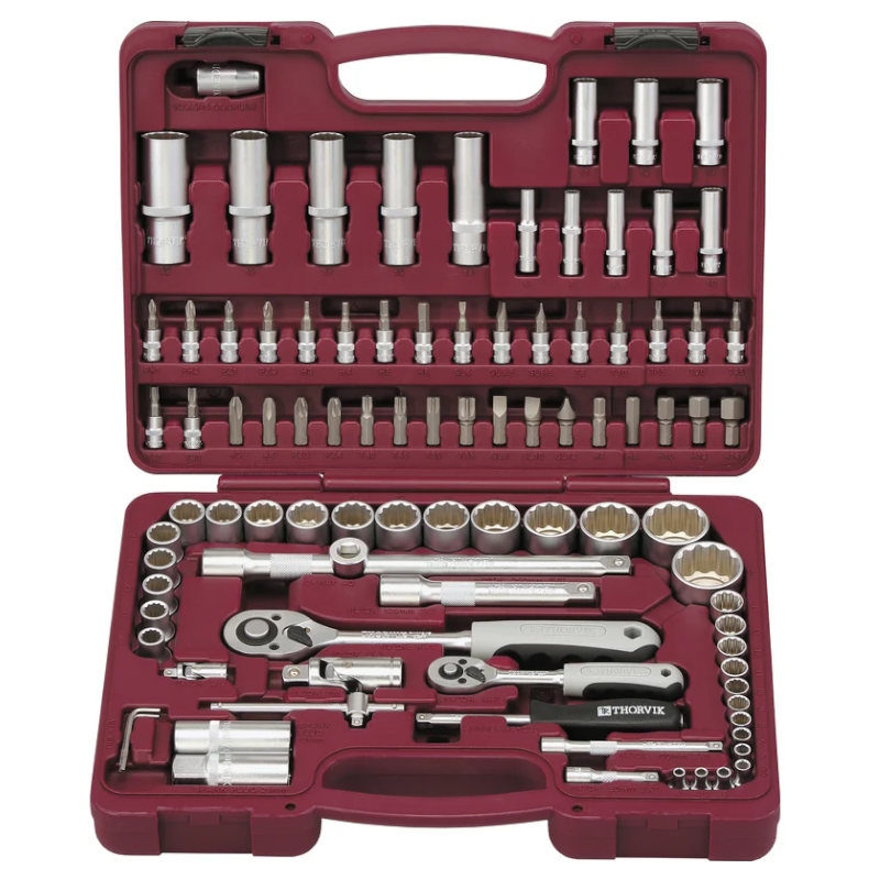 Набор инструмента универсальный Thorvik 052807, 1/4", 1/2"DR с головками торцевыми 12-гранными, 94 предмета UTS0094/12