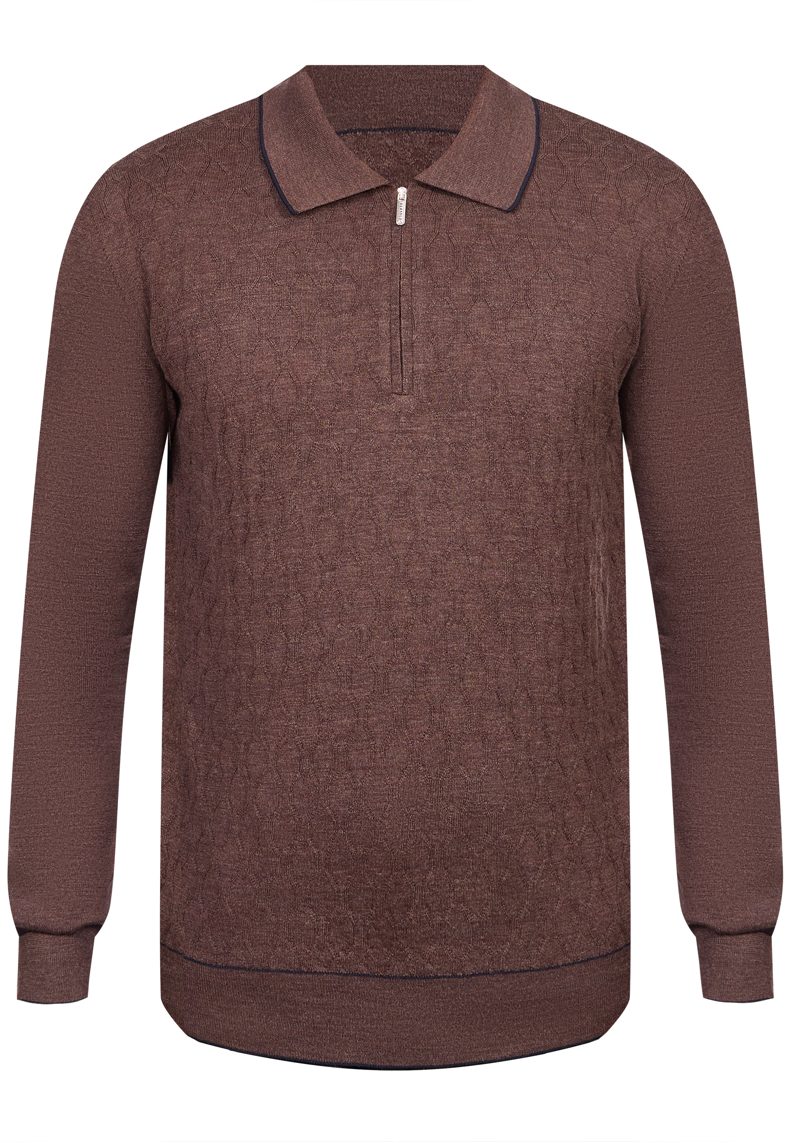 Пуловер от Bertolo в роскошном шоколадном оттенке — это воплощение вневременной элегантности и безупречного итальянского качества, отличающего бренд Made in Italy. Изготовленное из премиального трикотажа на основе шерсти с добавлением шелковых нитей, изделие предоставляет не только исключительную мягкость, но и утонченный блеск, делая его ношение истинным удовольствием. Дизайн в стиле поло с отложным воротником и молнией сочетает в себе классическую изысканность и современную функциональность. Гармонирующий с основным цветом фактурный жаккардовый узор с ромбами на передней части модели придает образу динамичность и глубину, превращая каждый его элемент в произведение искусства. Это изделие станет элегантным дополнением к гардеробу настоящего современного джентльмена, подчёркивая его утонченный вкус и стремление к совершенству.