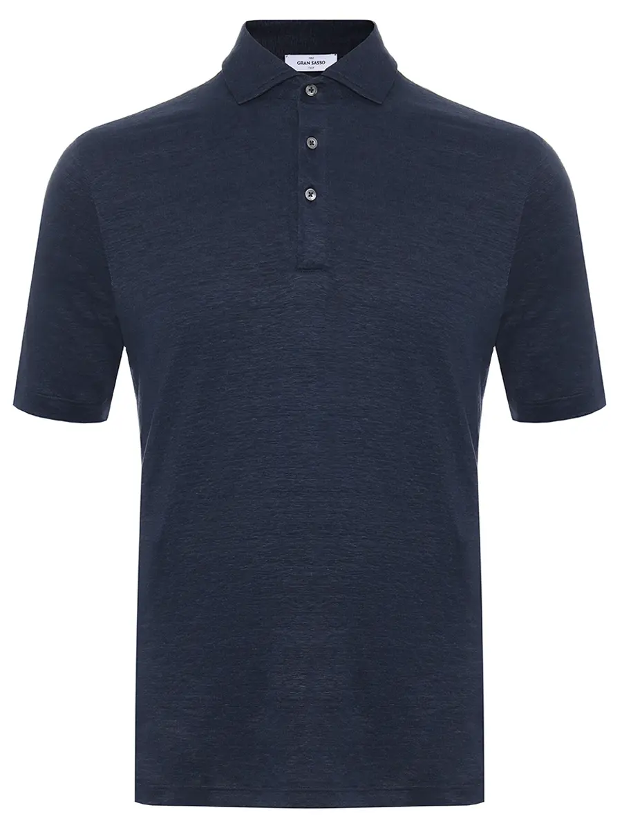 -Синее поло из легкого дышащего льна от GRAN SASSO.
