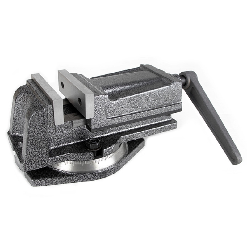 Тиски PROMA осуществляют жесткую фиксацию детали толщиной до 75 мм. Функция поворота расширяет возможности обработки и делает работу оператора более удобной. Ходовой винт защищен от механических повреждений. Небольшой вес позволяет с легкостью переносить приспособление к месту проведения работ. Такие тиски используются при работе на фрезерных станкахПреимущества Жесткая и надежная фиксация заготовки, обеспечивающая точность обработки Функция поворота расширяет возможности работы, позволяя устанавливать заготовку под нужным углом без перестановки тисков Простое управление и регулировка положения Прочная металлическая конструкция гарантирует долгий срок службы Компактные размеры и небольшой вес облегчают использование и транспортировку Угол поворота - 360 градусов Высота губок -35 мм Высота тисков - 106 мм
