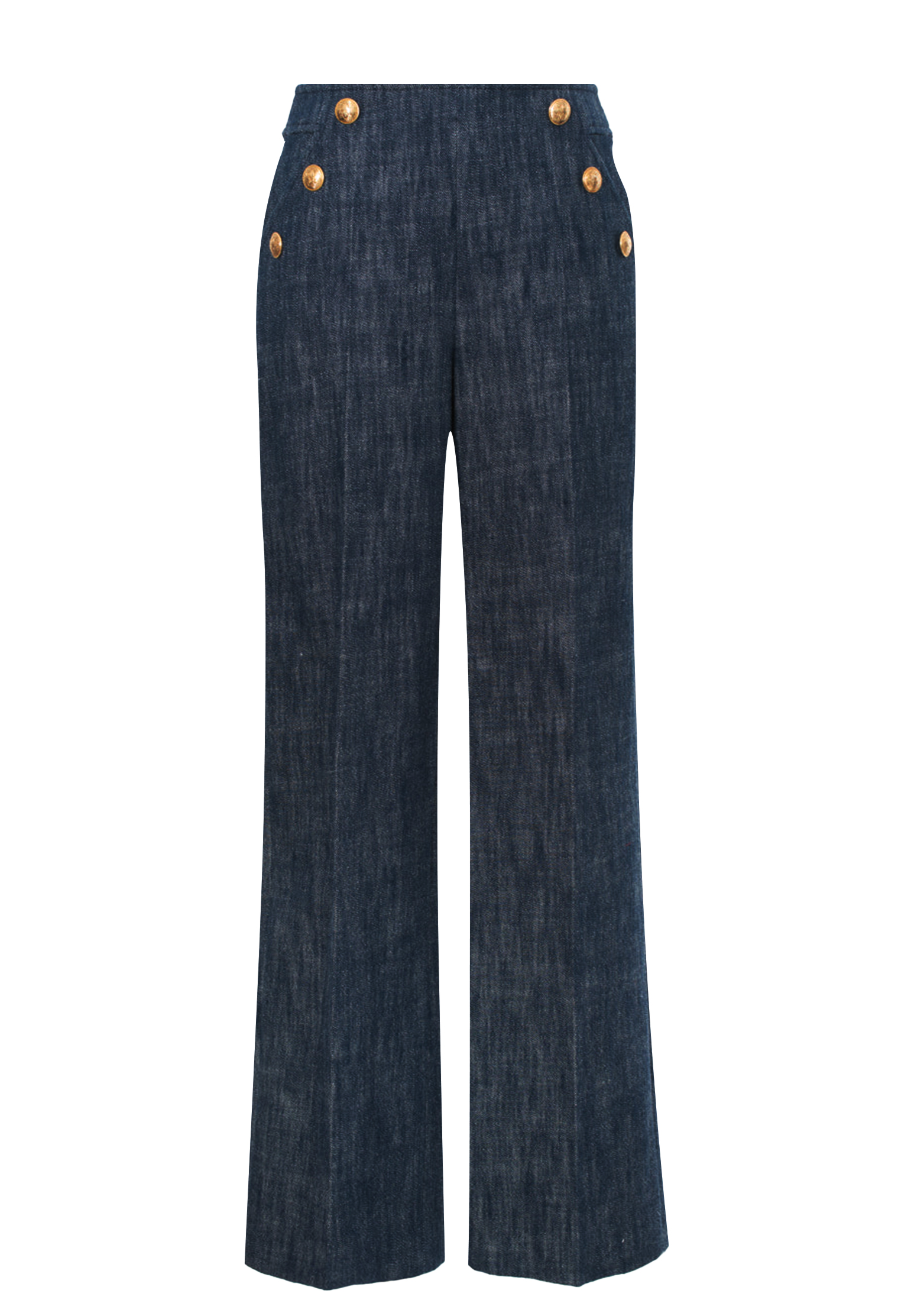 Эти восхитительные прямые брюки от Weill — настоящее воплощение французского ретро-шика, искусно сочетающего вневременность и утонченность. Выполненные из премиального хлопкового денима, они воплощают матросский стиль, элегантно подчеркивая женственную фигуру благодаря высокой талии и широким брючинам. Глубокий и насыщенный синий оттенок материи совершенствуется роскошными золотыми пуговицами Weill, символизирующими богатое наследие бренда.