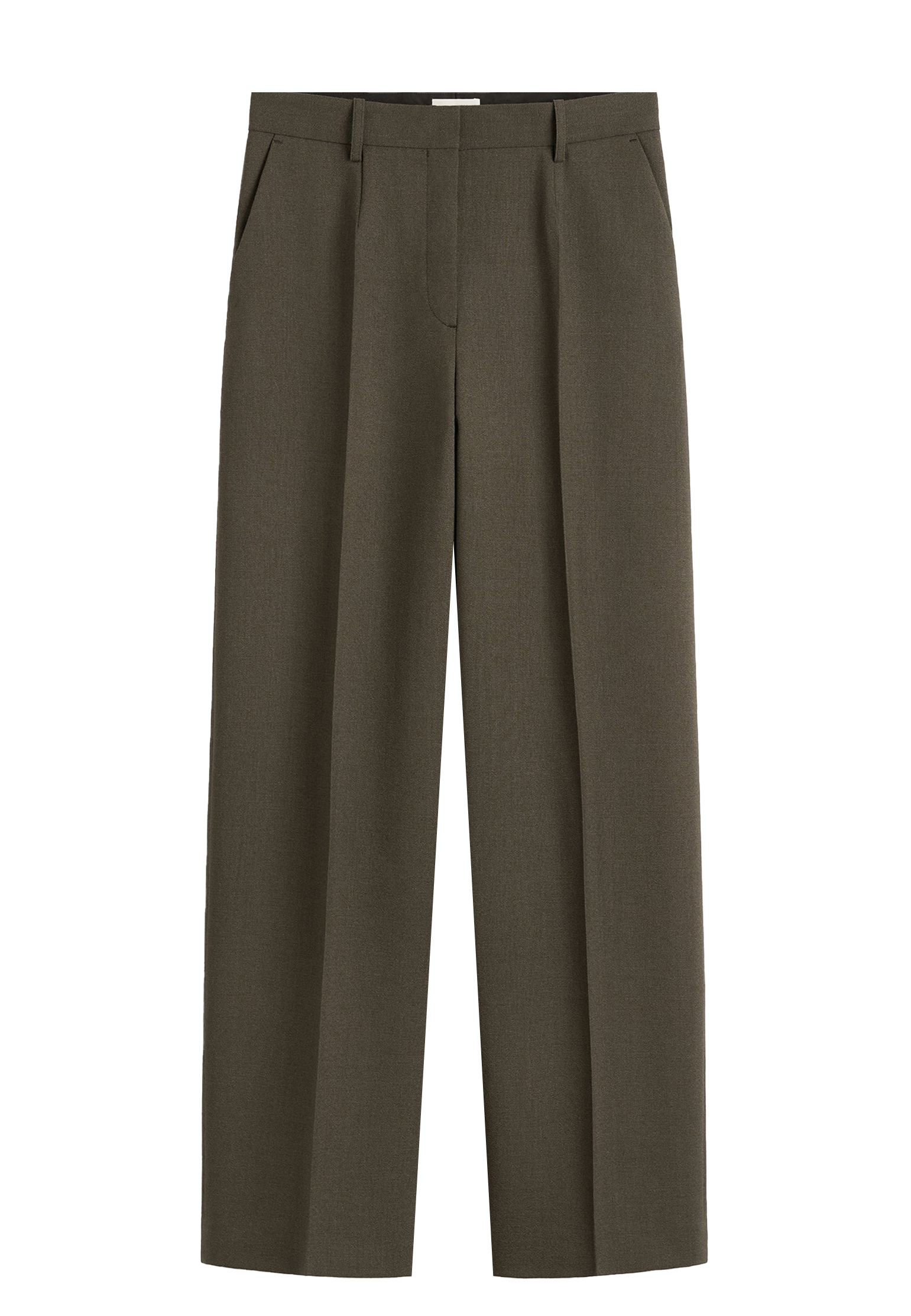Познакомьтесь с классическими прямыми брюками в темно-зеленом цвете от шведского бренда Toteme, воплощающими в себе подлинный скандинавский минимализм и утонченную элегантность. Основанный Элин Клинг и Карлом Линдманом, Toteme создает одежду, сочетающую современность и вечную эстетику. Эти брюки, выполненные из роскошной шерстяной смеси, отличаются продуманными деталями и высоким качеством исполнения. Потайная застежка спереди и шлевки для ремня обеспечивают идеальную посадку и комфорт. Заутюженные складки придают брюкам структурированность, а французские боковые карманы и два задних на пуговицах добавляют практичности. Прямой подол завершает образ, делая эту модель незаменимой частью женского гардероба. Она безупречно подойдет для создания образов как в офисе, так и для элегантных вечерних мероприятий.