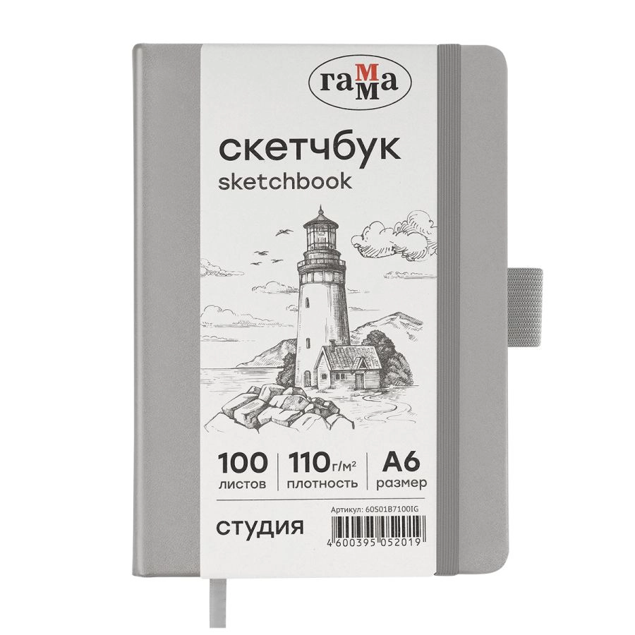 Скетчбук Гамма "Студия" А6 100 л 110 г, серебро, твердая обложка, на резинке, слоновая кость