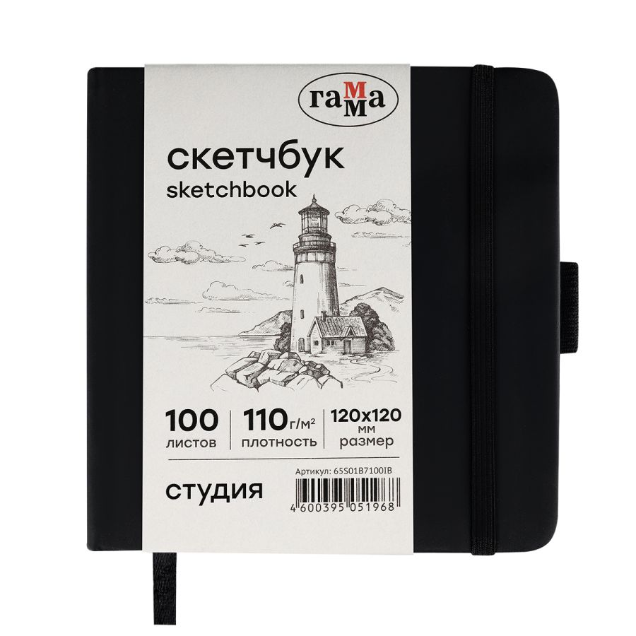 Скетчбук Гамма "Студия" 12х12 см 100 л 110 г, черный, твердая обложка, на резинке, слоновая кость