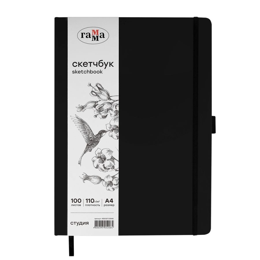 Скетчбук Гамма "Студия" А4 100 л 110 г, черный, твердая обложка, на резинке, белая