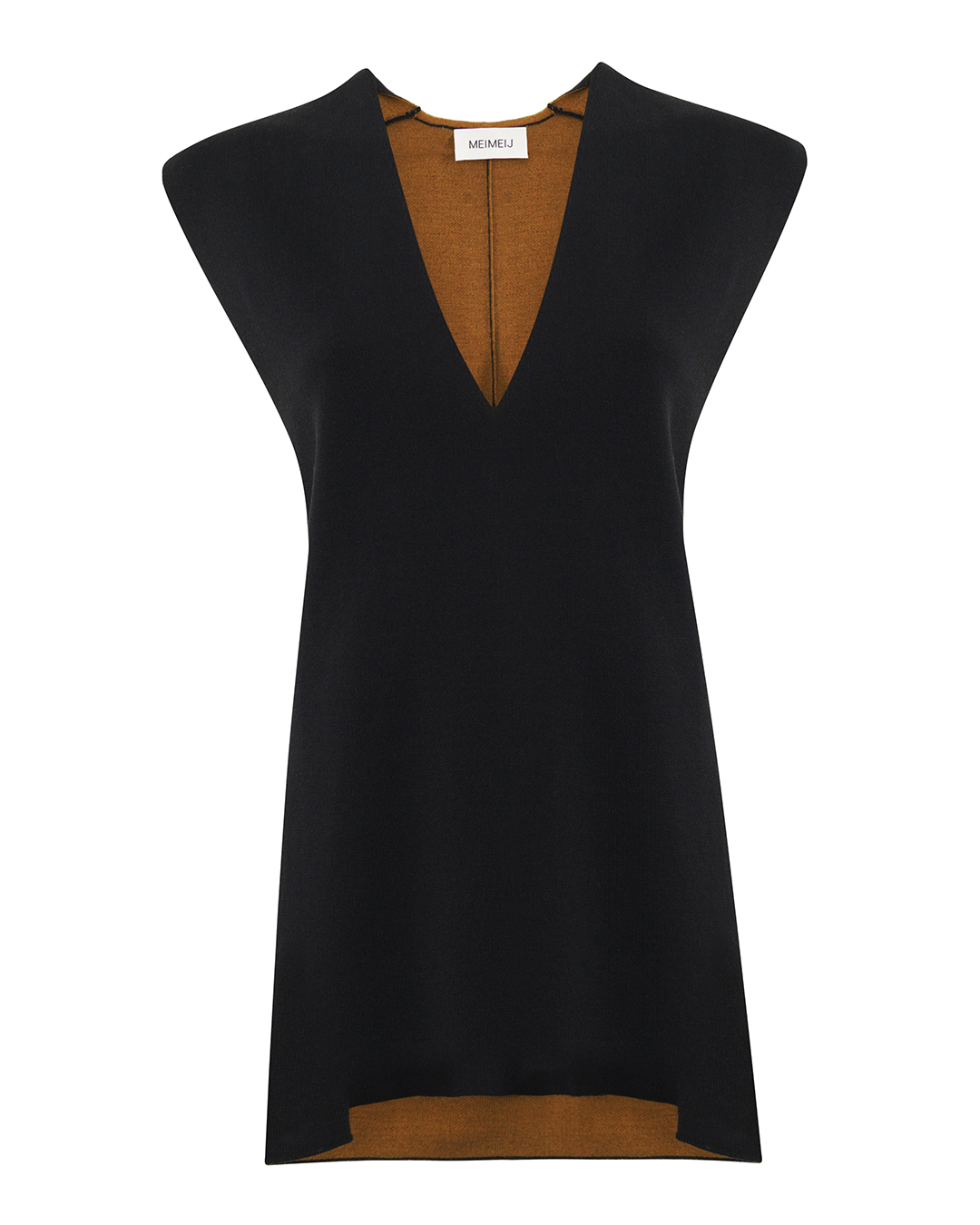 Этот жилет воплощает в себе элегантность минимализма, облекая тело в утонченную форму с современными акцентами. Силуэт изделия характеризуется лаконичными линиями и продуманной геометрией, подчёркнутой выразительным вырезом в форме V-образного декольте, которое придаёт одежде изысканную утонченность. Жилет изготовлен из плотной, но мягкой на ощупь ткани, образующей четкие контуры, обеспечивающие идеальную посадку. Умеренно широкие плечи добавляют структуру, создавая эффектный и уверенный образ. Отделка изделия гармонирует с его основной концепцией: отсутствие лишних деталей акцентирует внимание на чистоте форм, а оригинальный цвет внутренней подкладки вносит нотку креативной изысканности. Такой жилет станет идеальным дополнением как к классическому, так и к современному гардеробу, легко сочетается с разнообразными стилевыми решениями и способен подчеркнуть уникальность любого образа.