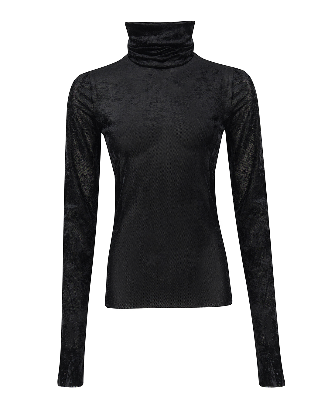 Эта водолазка воплощает в себе элегантность и нежность, благодаря использованию благородной бархатной текстуры, которая мягко огибает фигуру и создаёт неповторимое ощущение комфорта. Материал изделия обладает лёгким мерцанием, которое добавляет глубину и богатство цвету, придавая образу утонченную изысканность. Силуэт водолазки приближен к традиционной форме, сохраняя центральный элемент – высокий воротник, который мягко драпируется и создаёт ощущение оболочки, подчеркивая линию шеи. Длинные рукава обтекаемого кроя добавляют гармонию и визуально удлиняют силуэт. Детали отделки минималистичны, акцентируя внимание на фактуре ткани: отсутствие швов, которые могут отвлечь взгляд, демонстрирует мастерство исполнения и безупречное качество. Такая водолазка станет идеальным дополнением как к деловому гардеробу, так и к вечернему образу, внося нотку изысканности и стиля в любой выбор.