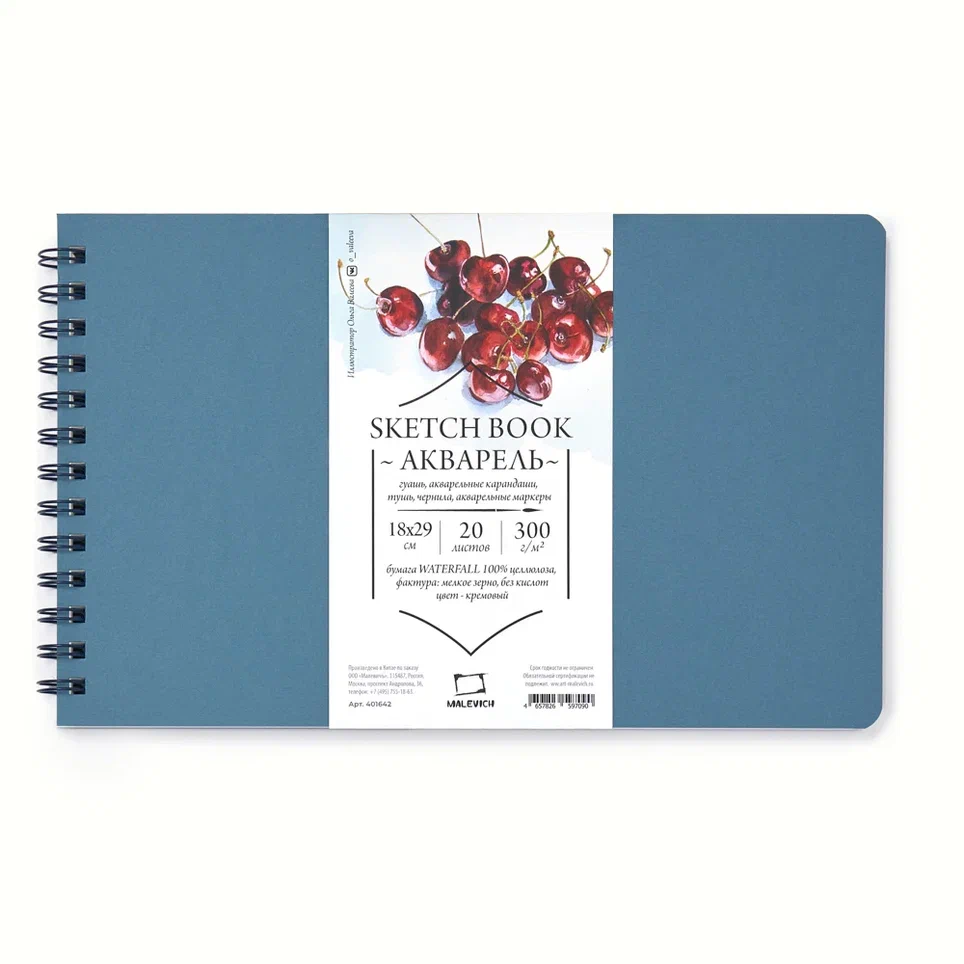 Скетчбук для акварели, панорамный, на спирали Малевичъ "WaterFall" 18х29 см 20 л 300 г, 100% целлюл
