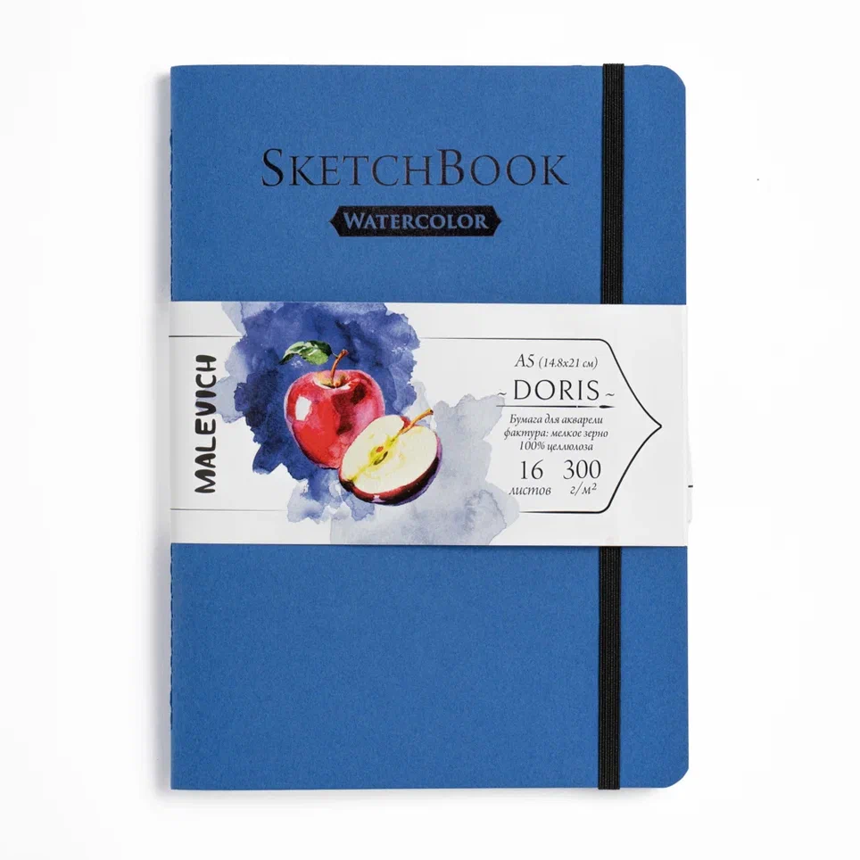 Скетчбук для акварели, сшивка Малевичъ "Doris" А5 16 л 300 г , 100% целлюлоза, синий