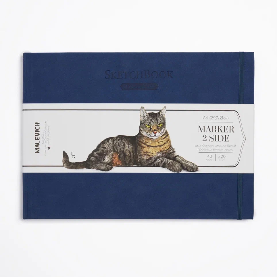 Скетчбук для маркеров Малевичъ А4 40 л 220 л, двусторонняя бумага, горизонтальный, синий