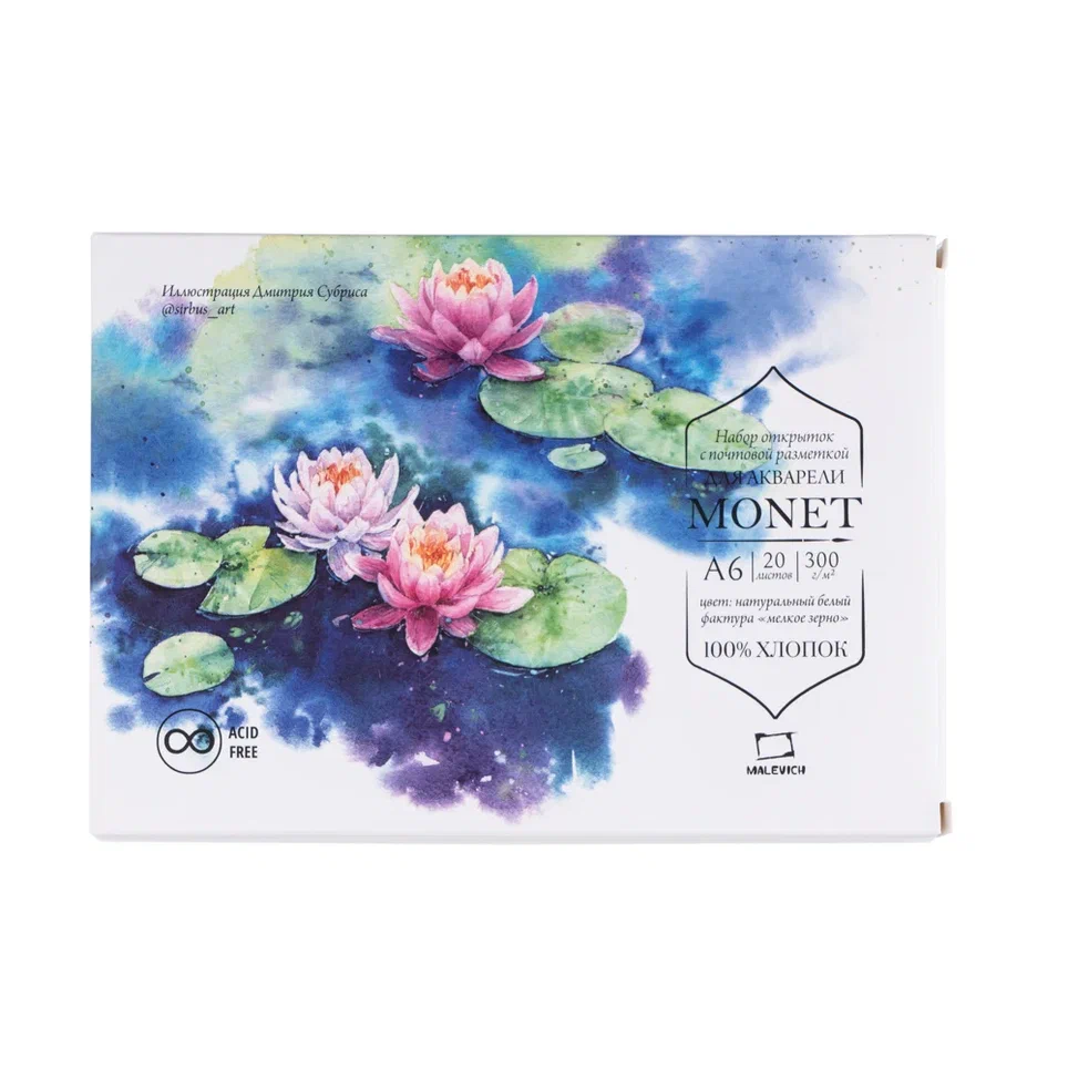 Набор открыток в металлической коробке Малевичъ "Monet" А6 20 л 300 г, 100% хлопок, Fin