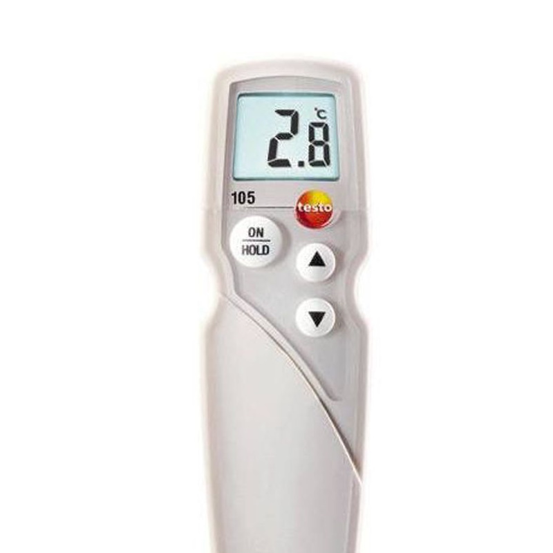 Термометр Testo 105 00000002384 для работы с сильно замороженными продуктами. Измеритель работает с температурами от – 50 °С до + 275 °C - он одинаково эффективен при приемке замороженных продуктов, проверке приготовляемых блюд и контроле степени нагрева кипящего растительного масла во время жарки во фритюре.Преимущества Сигнализация настраивается вручную и позволяет контролировать температуру без постоянного считывания информации с дисплея. О превышении предельных значений термометр сообщит звуковым сигналом и изображением на экране. Функция ускоряет выполнение серийных измерений большого числа продуктов Симметричная форма контактного термометра Testo подходит для использования как левой, так и правой рукой. Измерительный наконечник расположен перпендикулярно к корпусу, чтобы его было легко погружать в глубоко замороженные продукты Гнездо для установки аксессуаров универсальное, позволяет подстраивать термометр Testo 105 под разные задачи. Прибор комплектуется высокопрочным винтовым зондом для контроля внутренней температуры твердых продуктов и погружным щупом штыревого типа стандартной или увеличенной длины
