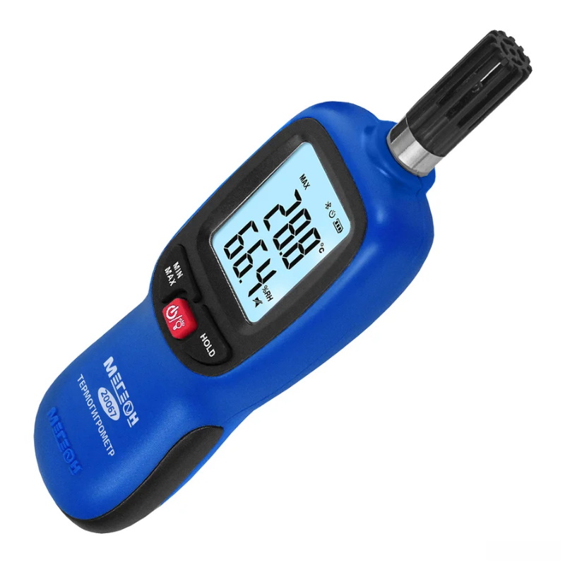 Термогигрометр Мегеон 20067 к0000401771, с Bluetooth, с поверкой предназначен для быстрого определения параметров температуры и влажности с высокой точностью в помещениях и на открытом пространстве.Преимущества С его помощью можно зафиксировать максимальные и минимальные значения измеренных данных Функция записи результатов в память ёмкостью 999 ячеек Измеритель получил современный дизайн и компактные размеры Модель имеет эргономичную форму корпуса, удобное расположение органов управления на передней панели и большой ЖК- дисплей с яркой светодиодной подсветкой На заднее стенке расположено монтажное отверстие для установки на штатив, благодаря чему достигается максимальное удобство при эксплуатации Возможности программного обеспечения позволяют передавать полученные параметры по Bluetooth в мобильные устройства на базе Android, а через ПО приложения предусмотрен просмотр измеренных данных в виде кривых и сохранения их в гаджет для последующего анализа