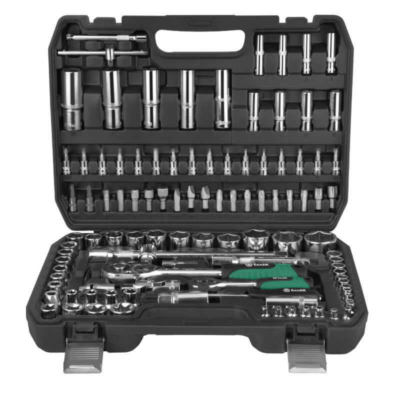 Набор инструментовБелАК ХРОМ БАК.07078, 108 предметов редставляет собой универсальное решения для автомобиля, дачи или гаража.Преимущества Хромовое покрытие формирует гальванический щит: отражает коррозию, упрощает очистку, снижает трение и увеличение срока службы Инструменты изготовлены из S2‑сверхпрочной стали – комплексно‑легированной с повышенным содержанием углерода, применяемой в автопроме за её жёсткость и износостойкость Набор инструментов для автомобиля профессиональный собрал в себе самые востребованные виды инструмента для различных типов задач: от мелких проблем, до полноценного ремонта Набор торцевых головок, бит, ключей имеет высокие показатели твердости, что говорит о долгом сроке службы и устойчивости к сильным нагрузкам, за счет чего, данный комплект можно использовать как профессиональный инструмент для автосервиса Высокое качество всех элементов набора порадует автомобилиста и мастера любого стажа и квалификации, а универсальность комплектации позволит использовать набор как инструменты для дома, машины и других видов ремонта Упакован в прочный противоударный кейс с металлическими замками, который надежно защищает инструменты от повреждений и обеспечивает удобство хранения и транспортировки