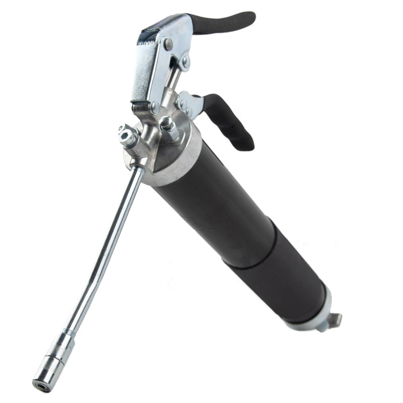 Шприц смазочный пистолетного типа 500 мл — уникальное оборудование, удобное в использовании одной рукой. Станет незаменимым помощником при смазочных работах в ситуации, когда другую руку приходится использовать для дополнительных действийПреимущества Шприц для смазки пистолетного типа создан специально для использования одной рукой, для труднодосягаемых мест автомобилей и установок Подходит для густой смазки различной вязкости Корпус — стальной, оснащен резиновой накладкой Это облегчает использование и предотвращает скольжение — конструкция не выпадет из рук и не повредится