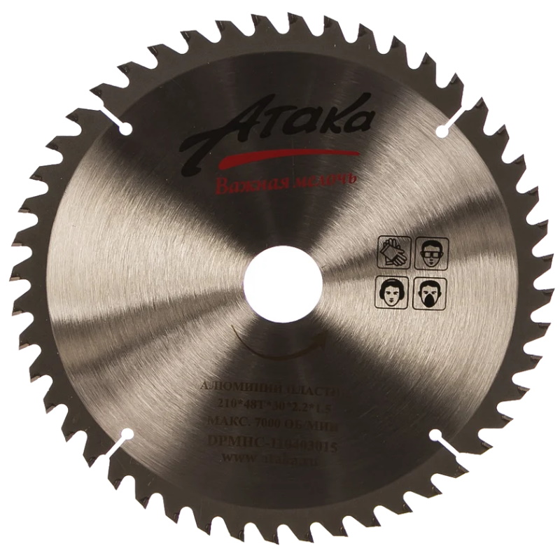 Диск пильный Атака 210*48*30, алюминий - предназначен для распила алюминия и пластика толщиной не более 3 мм.Преимущества Оснащен технологическими отверстиями для отвода тепла, что значительно снижает деформацию диска, а при перегреве уменьшает колебания и шум Выполнен из высококачественной стали Зубья с алмазной шлифовкой Надежность в использовании