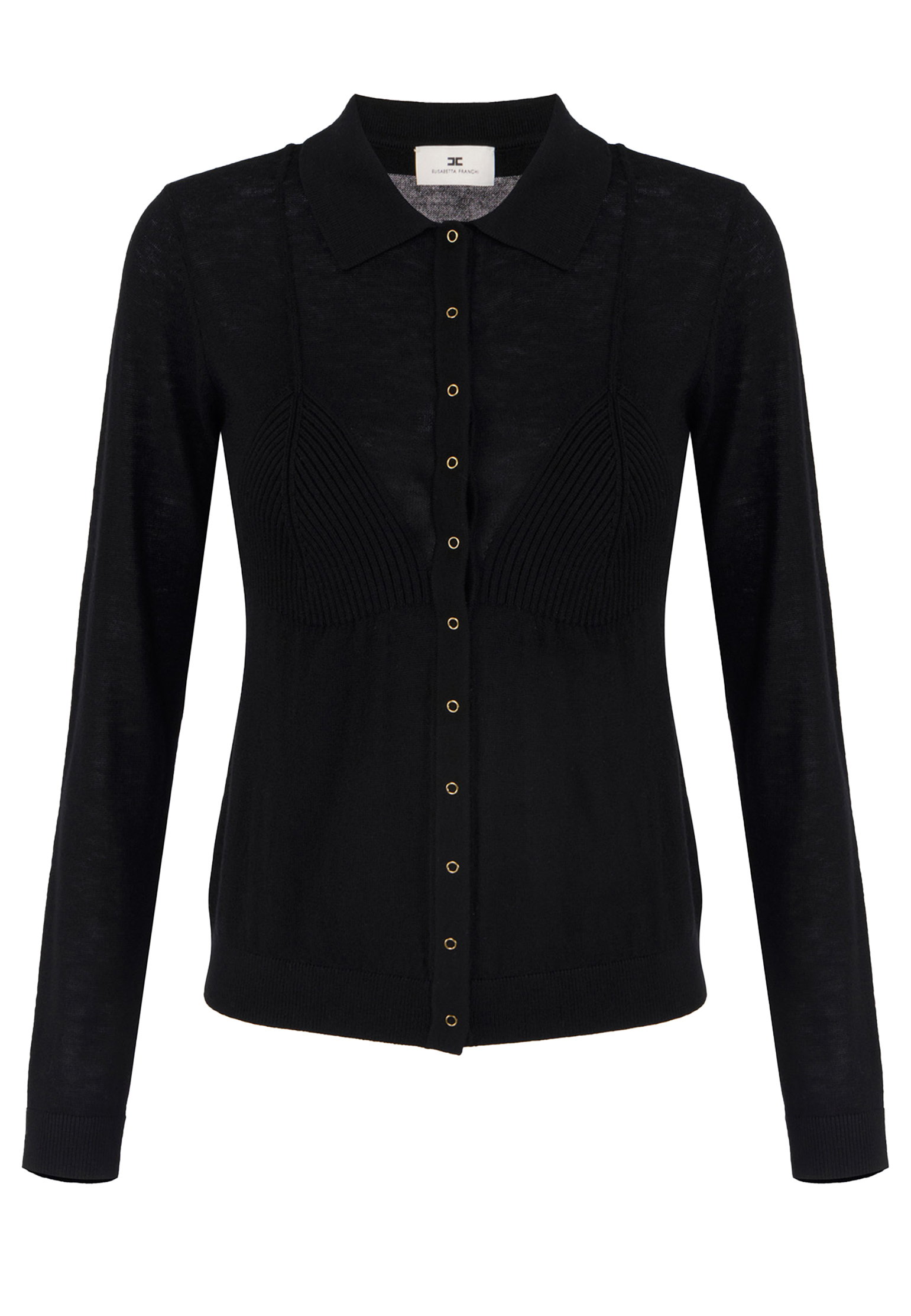 Черный кардиган с воротником-поло от Elisabetta Franchi — это воплощение вечной классики и непринужденной элегантности с акцентом на стиль городского шика. Изготовленный в Италии из смесовой шерсти, он сочетает комфорт и утонченность, подчеркивая женственный силуэт. Рубашечный воротник и длинные рукава добавляют изделию строгий и элегантный вид, а ребристый крой, повторяющий линию бюстгальтера, создает искусный контраст с прозрачными элементами, придавая кардигану особую изысканность. Застежка на пуговицы позволяет варьировать стиль, а тщательно расположенная этикетка с логотипом завершает образ, подтверждая приверженность бренда к высоким стандартам качества и дизайна. Эта модель станет незаменимым элементом гардероба для современной женщины, желающей подчеркнуть свой вкус и изысканность.