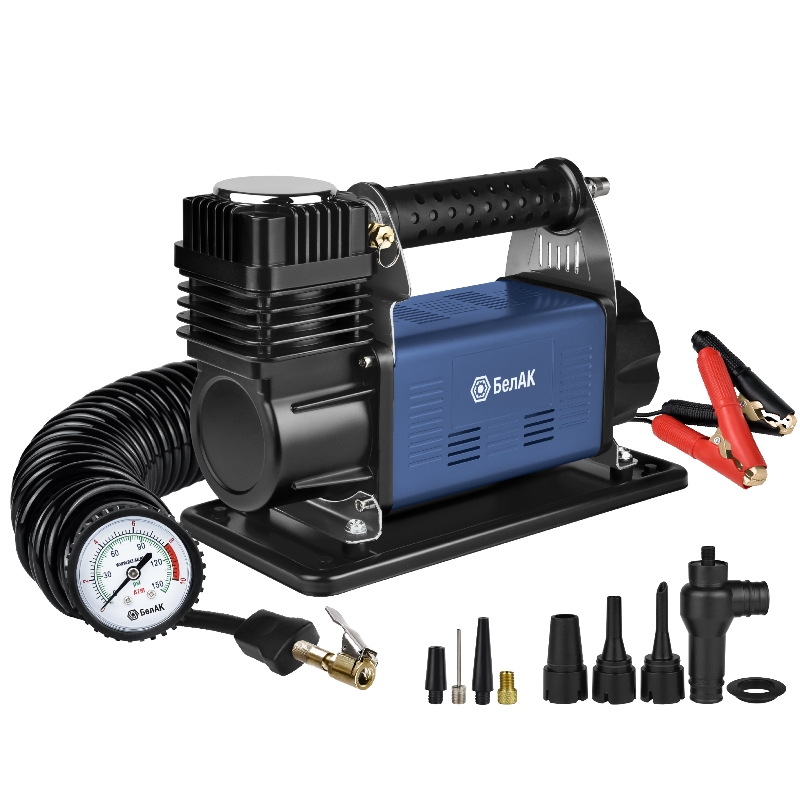 Компрессор автомобильный БелАК Х-СЕРИЯ БАК.99359 — поршневой компрессор с производительностью 160 л/мин, работающий от 12 В, предназначенный для быстрой и эффективной накачки различных шин и надувных изделийПреимущества Высокая производительность 160 л/мин позволяет быстро накачивать шины автомобилей, внедорожников, пикапов, а также другие надувные изделия Металлический корпус и широкое основание обеспечивают надежность и устойчивость при работе Защита от перегрева продлевает срок службы компрессора Быстросъёмное соединение и комплект насадок увеличивают удобство и универсальность использования Тканевая сумка облегчает хранение и транспортировку компрессора Высокая мощность двигателя и крупные поршни обеспечивают эффективную и длительную работу