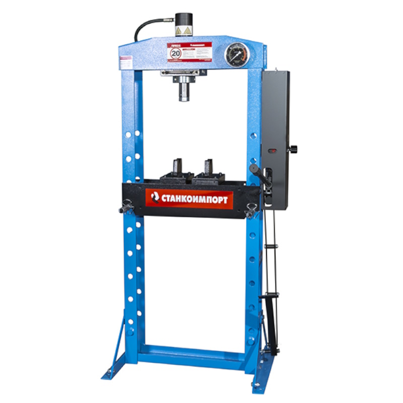 Гидравлический рамный пресс Станкоимпорт SD0823 предназначен для запрессовки или выпрессовки втулок, коленвала, снятия или установки подшипников для автомобиля, сжатия всевозможных деталей, для гибки арматуры или листового металлаПреимущества Подвижной цилиндр Комбинированный привод Четвертым важным аспектом является удобство эксплуатации. Пресс оборудован двухскоростным насосом для точного контроля давления, имеет комфортное ножное управление, устойчивую напольную установку и широкий рабочий диапазон от 38 до 918 мм Устойчивость манометра к колебаниям давления за счет наполнения компенсирующей жидкостью Сварная рама пресса увеличивает срок службы