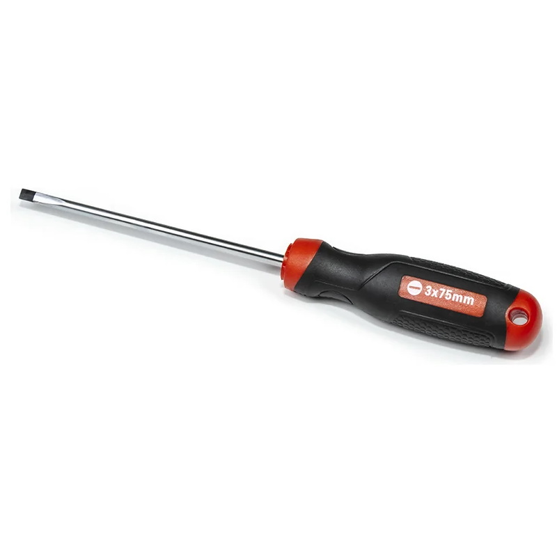 Отвертка шлицевая Станкоимпорт CS-30.4.1, SL3х75 предназначена для завинчивания/отвинчивания крепежных элементов вручную, имеющих внутренний рабочий профиль.Преимущества Отвертка изготовлена из высококачественной легированной хром-ванадиевой инструментальной стали, с последующей закалкой до твердости в пределах 46-48HRC, что соответствует всем требования нормативной документации Наконечник проходят дополнительную термическую обработку с целью получения оптимального сочетания твердости и пластичности Стержень имеет глубокую посадку с крепление в двух точках, что исключает проворачивание стержня в рукояти Отвертка снабжена двухкомпонентной эргономичной рукоятью Рукоять имеет специальное отверстие, поэтому отвертку можно с легкостью разместить на вертикальной поверхности или установить темляк Благодаря высококачественным компонентам рукоять имеют высокую стойкость к агрессивным средам