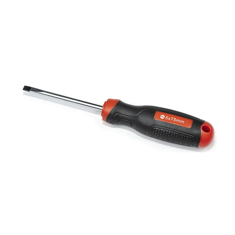 Отвертка шлицевая Станкоимпорт CS-30.4.3, SL5х75 предназначена для завинчивания/отвинчивания крепежных элементов вручную, имеющих внутренний рабочий профиль.Преимущества Отвертка изготовлена из высококачественной легированной хром-ванадиевой инструментальной стали, с последующей закалкой до твердости в пределах 46-48HRC, что соответствует всем требования нормативной документации Наконечник проходят дополнительную термическую обработку с целью получения оптимального сочетания твердости и пластичности Стержень имеет глубокую посадку с крепление в двух точках, что исключает проворачивание стержня в рукояти Отвертка снабжена двухкомпонентной эргономичной рукоятью Рукоять имеет специальное отверстие, поэтому отвертку можно с легкостью разместить на вертикальной поверхности или установить темляк Благодаря высококачественным компонентам рукоять имеют высокую стойкость к агрессивным средам