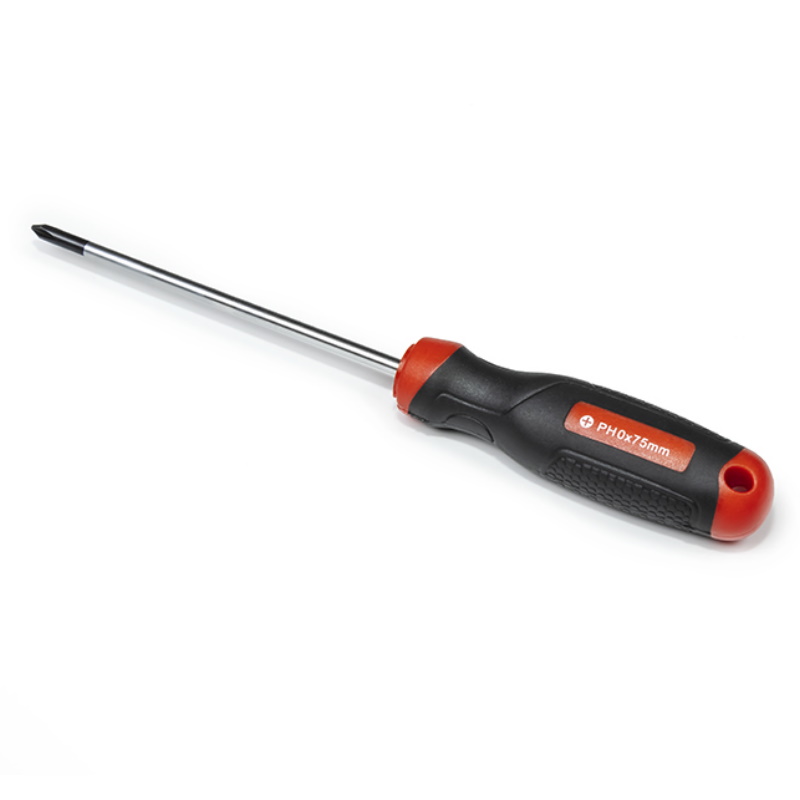Отвертка крестовая Станкоимпорт CS-30.5.1, PH0х75 предназначена для завинчивания/отвинчивания крепежных элементов вручную, имеющих внутренний рабочий профиль.Преимущества Отвертка изготовлена из высококачественной легированной хром-ванадиевой инструментальной стали, с последующей закалкой до твердости в пределах 46-48HRC, что соответствует всем требования нормативной документации Наконечник проходят дополнительную термическую обработку с целью получения оптимального сочетания твердости и пластичности Стержень имеет глубокую посадку с крепление в двух точках, что исключает проворачивание стержня в рукояти Отвертка снабжена двухкомпонентной эргономичной рукоятью Рукоять имеет специальное отверстие, поэтому отвертку можно с легкостью разместить на вертикальной поверхности или установить темляк Благодаря высококачественным компонентам рукоять имеют высокую стойкость к агрессивным средам