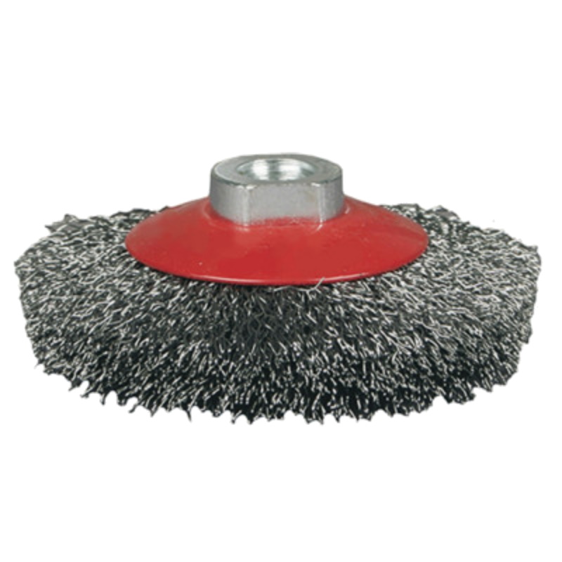 Щетка Атака N021, d-100, M14, вогнутая, гофрированная - профессиональный инструмент для мягкой обработки поверхностей с помощью угловых шлифовальных машин (УШМ).Преимущества Оптимальная толщина проволоки обеспечивает деликатную обработку Вогнутая форма позволяет работать в труднодоступных местах Гофрированная структура снижает агрессивность воздействия на поверхность Надежное крепление благодаря резьбе M14 Универсальность применения для различных материалов Высокая производительность при работе с УШМ