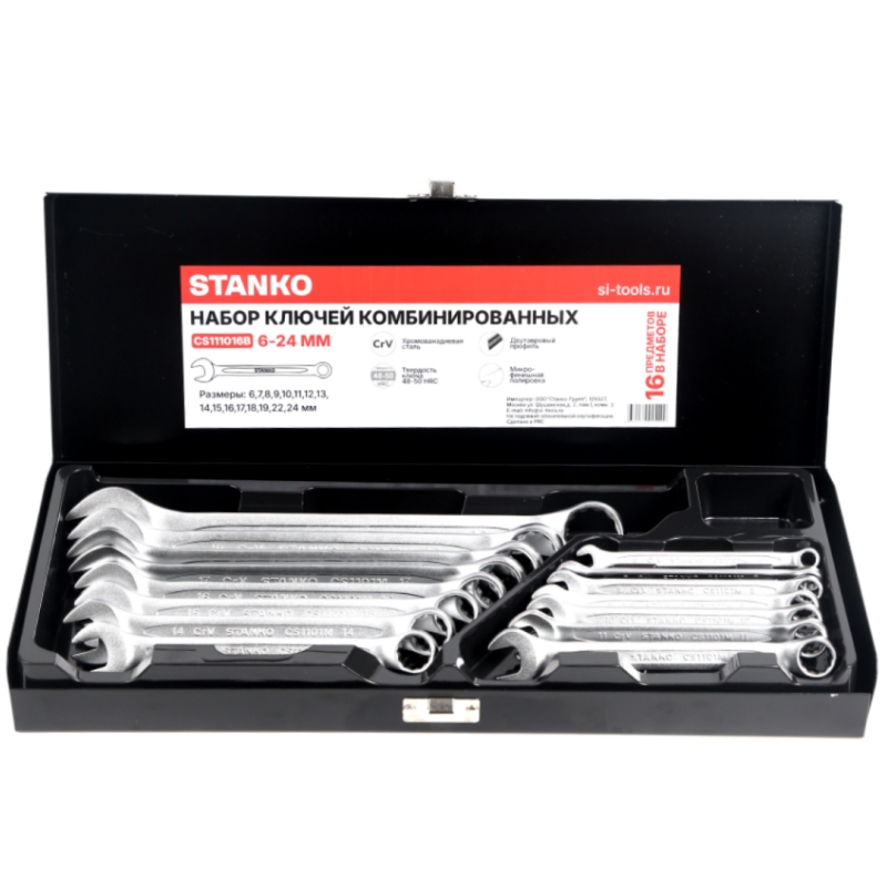Набор ключей комбинированных Stanko CS111016B, 16 предметов в кейсе (6-24 мм)