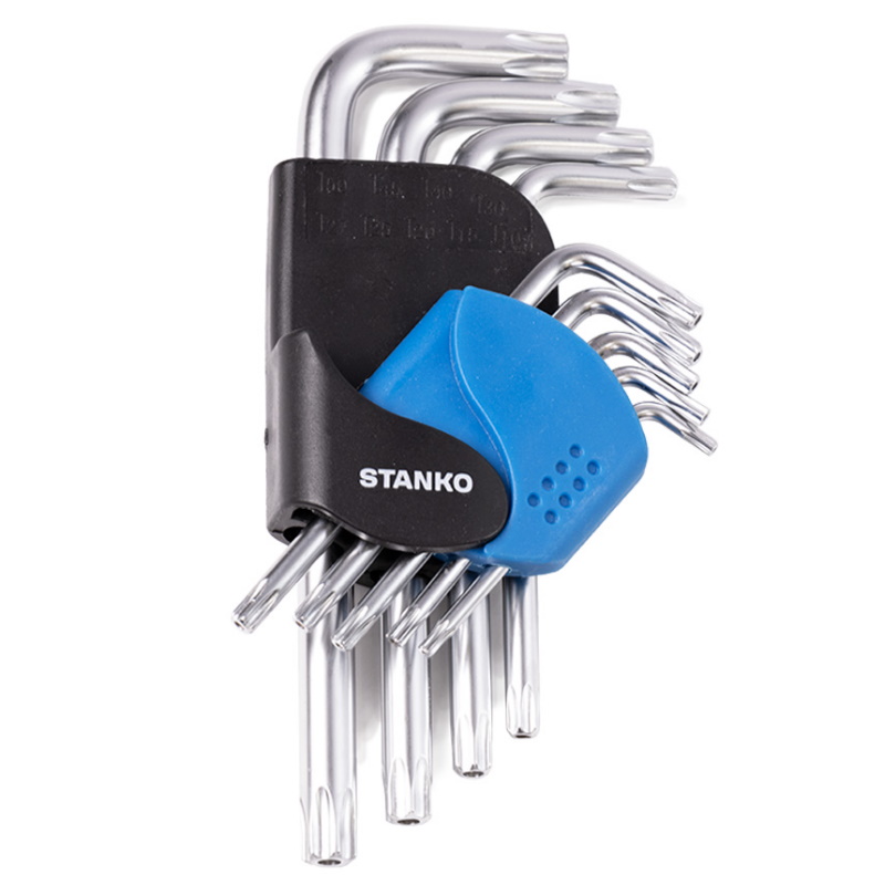Набор угловых ключей Torx Stanko CS11129S предназначен для работы с крепежом с внутренним профилем TORX. Монтаж / демонтаж крепежа различных изделий, устройств и агрегатов. Применяется на станциях технического обслуживания (СТО), автосервисах, автомастерских, в промышленности, производстве, строительстве.Преимущества Двусторонний профиль ключа позволяет применять его в различных положениях и в труднодоступных местах Пластиковый держатель поможет удобно разместить набор в районе рабочего места, а также держать инструменты набора в порядке и сохранности Набор включает в себя ключи следующих размеров: T10, T15, T20, T25, T27, T30, T40, T45, T50 Ключи изготовлены из высококачественной инструментальной легированной хром-ванадиевой стали. Технология горячей ковки и термической обработки ключей придаёт им особую прочность и высокую надёжность
