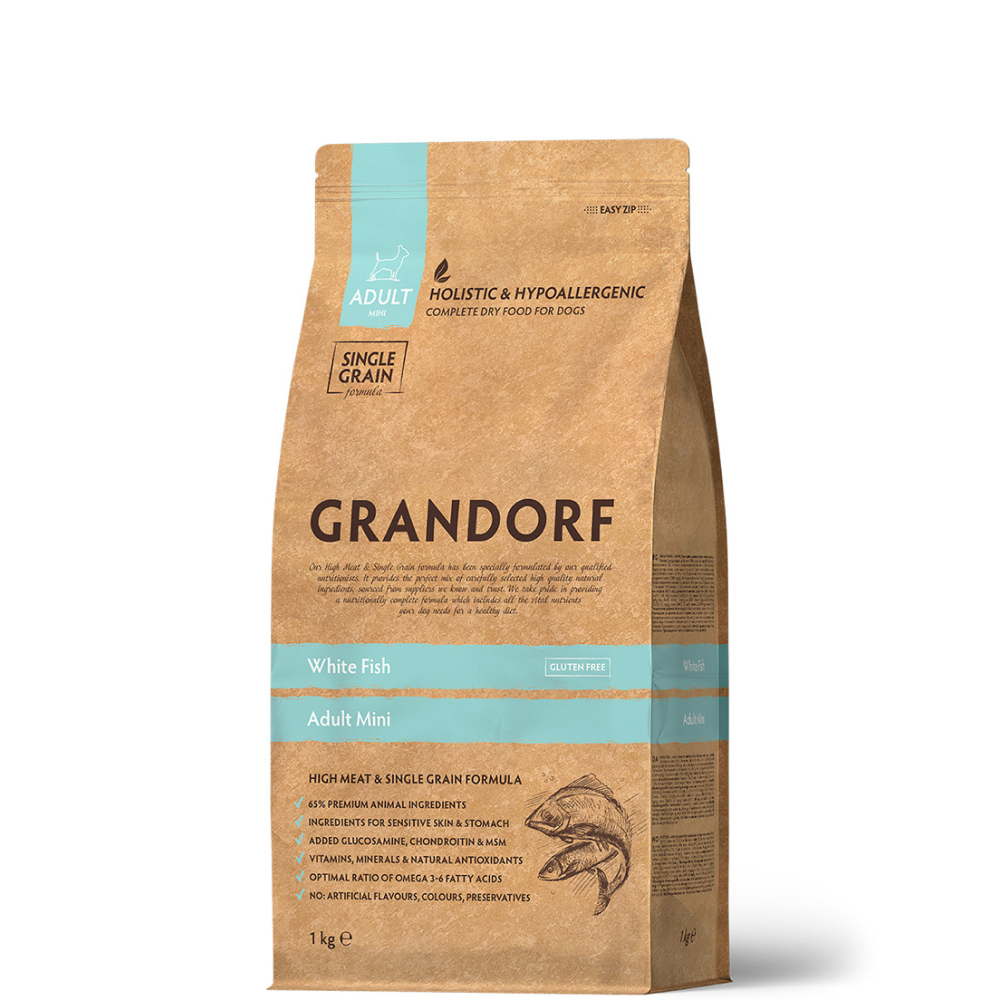 Grandorf Сухой корм для взрослых собак мелких пород с белой рыбой, 1кг