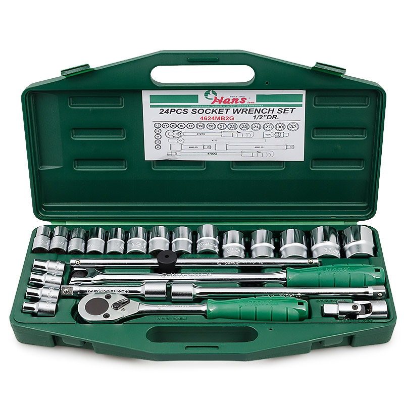 Набор шестигранных головок Hans 4624MB2G, 8-32мм, 24 предмета представляет собой ремонтно-монтажный набор, который состоит из всех необходимых инструментов и приспособлений, предназначенных для работы с болтовыми соединениями. Набор компактно размещен в пластиковом кейсе с крышкой и рукояткой для переноски.Преимущества Широкий диапазон размеров для различных задач Качественные материалы изготовления Надежная конструкция всех элементов Удобная комплектация с необходимыми аксессуарами