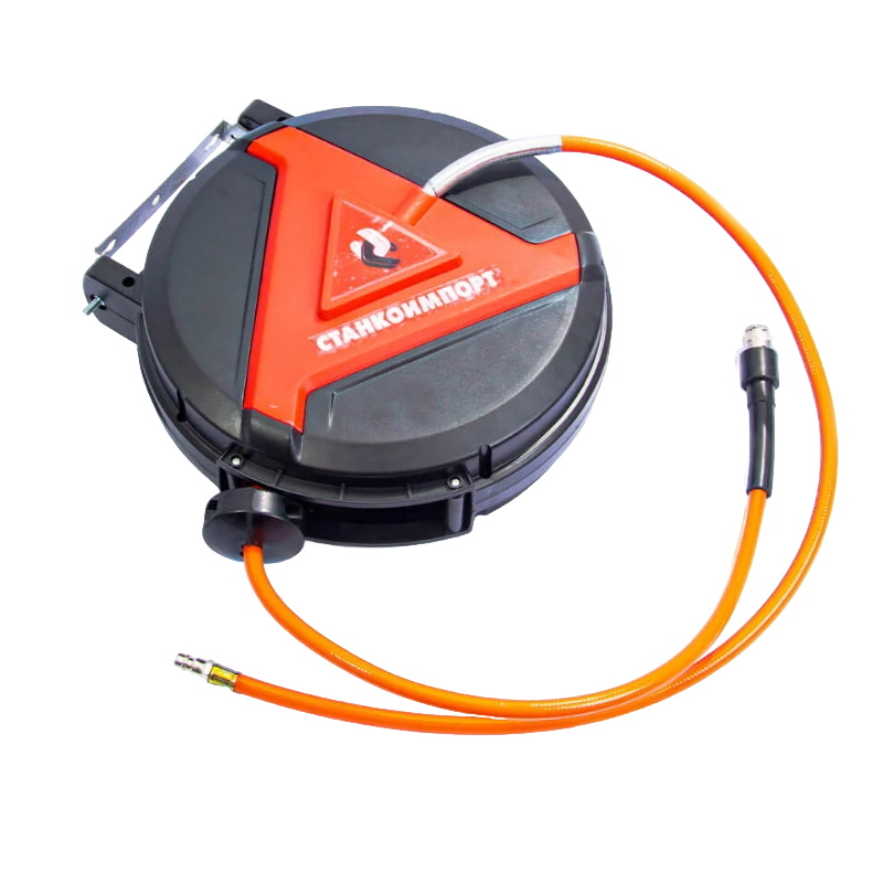 Шланг на самоскручивающейся катушке Станкоимпорт HR0812PU, 8/12 мм, 10 метров подает воздух от компрессора к пневматическому инструменту. Такими шлангами удобно пользоваться как в маленьких мастерских, так и на крупных СТО.Преимущества Автоматическая катушка предохраняет шланг от запутывания и перетирания, что значительно облегчает работу с пневмоинструментом, а также продлевает срок службы шланга На катушке установлена поворотная штанга для крепления на стену или стойку подъемника В катушке установлен автоматический фиксатор, срабатывающий через каждый метр шланга Благодаря плотности материала имеет увеличенный срок службы 100% совместимость с пневмоинструментом