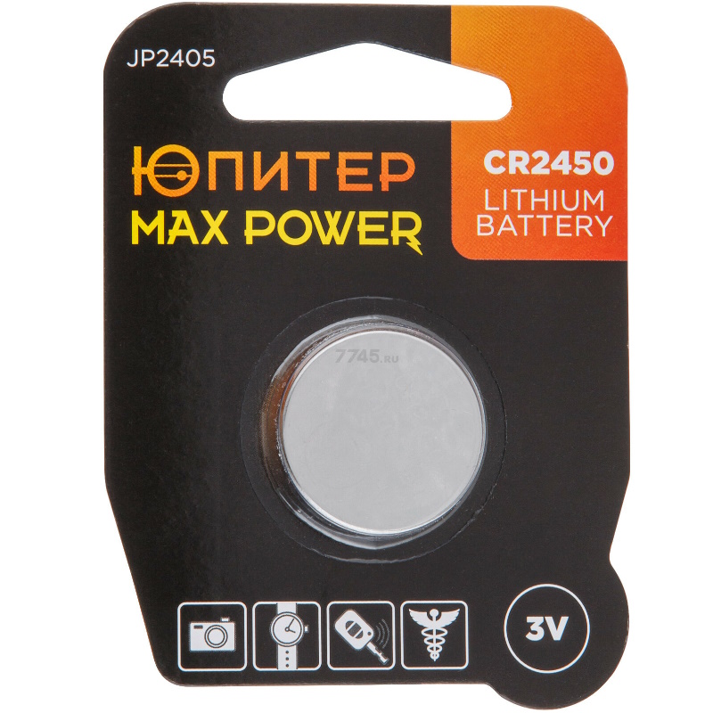 Батарейка CR2450 Юпитер MAX POWER JP2405, 3V, lithium, 1шт.