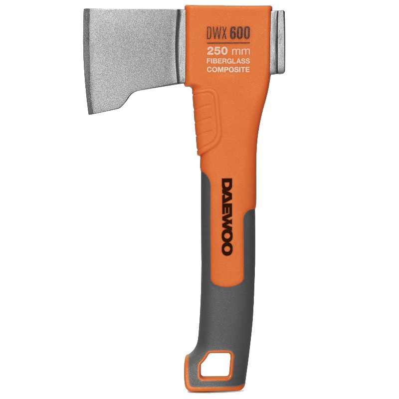 Топор универсальный Daewoo DWX 600 - компактный универсальный инструмент для выполнения различных работ с древесиной, включая рубку, колку щепы и использование в походных условиях.Преимущества Лезвие топора имеет уникальную форму, что позволяет эффективнее расщеплять древесину, оно выполнено из стали двойной закалки и имеет прецизионную заточку для долгого срока службы Специальное защитное покрытие лезвия предотвращает коррозию и застревание в древесине Рукоятка изготовлена из легкого, но прочного материала Fiberglass, который поглощает вибрацию от удара и минимизирует усталость, покрытие Soft Grip и загнутая форма гарантирует надежный хват Топор имеет оптимально сбалансированный центр тяжести, что максимизирует силу удара Надежное соединение рукояти и лезвия делает работу с инструментом безопасной Специальная форма обуха позволяет использовать топор как кувалду, чтобы вбить клин или небольшой гвоздь Защитный чехол позволяет безопасно хранить или транспортировать инструмент, а широкое отверстие в основании рукоятки позволит удобно его подвесить
