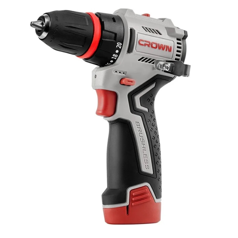 Дрель-шуруповерт Crown ,надёжный и мощный бесщеточный двигатель,в сочетании с двухскоростным планетарным редуктором и аккумуляторными батареями со встроенной системой защиты и управления CROWN CELL PROTECTION, обеспечивают высокую производительность в ультракомпактном корпусе.Преимущества Муфта ограничения крутящего момента позволяет легко подобрать необходимую силу затяжки шурупа/самореза, а так же производить сверление Обрезиненные вставки в местах хвата, а так же на боковых частях инструмента фиксируют инструмент на наклонных поверхностях Лёгкий и компактный - инструмент мебельщика, электрика, автослесаря и строителя